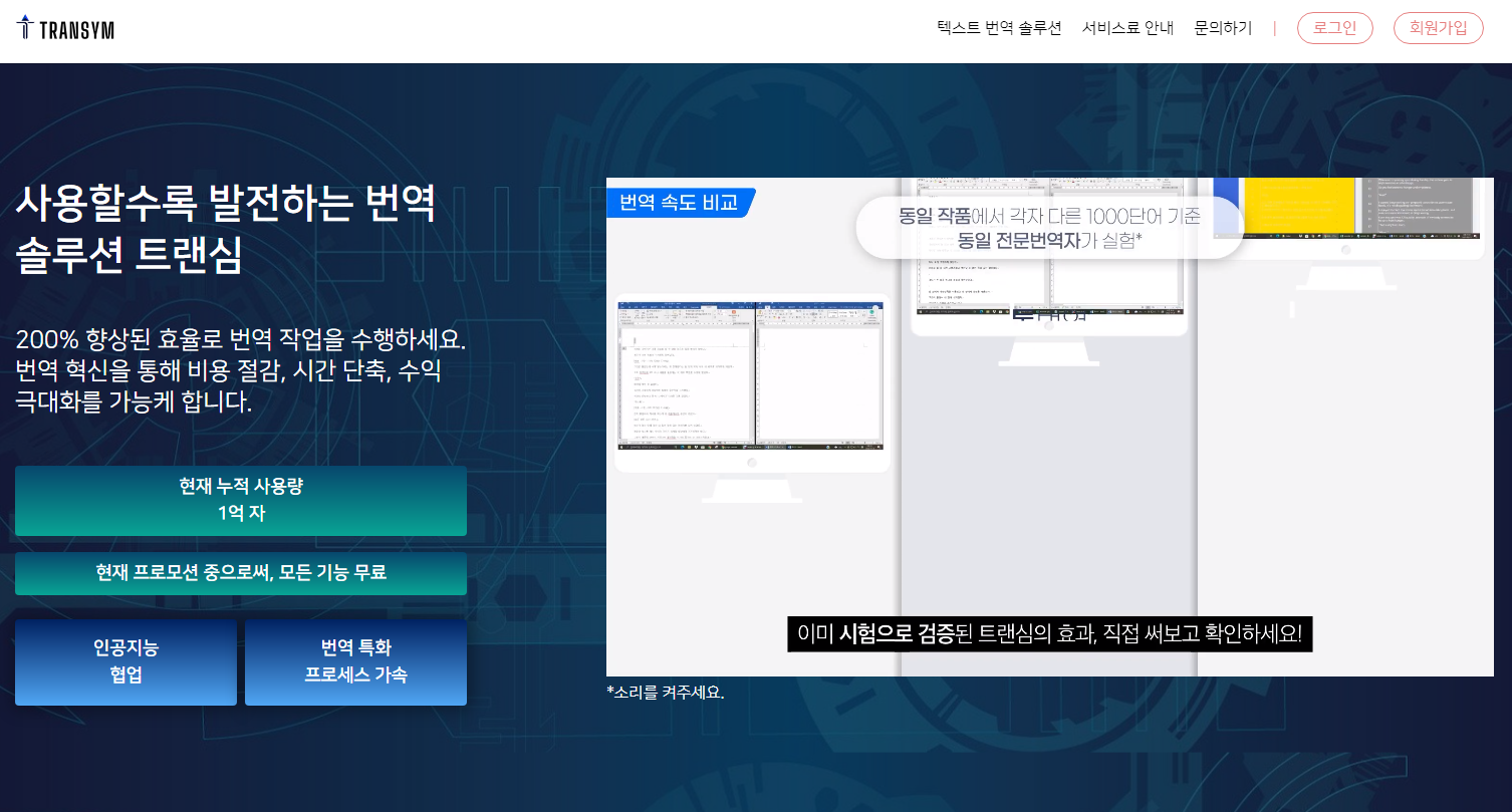 현재 프로모션 중으로써, 모든 기능 무료 인공지능협업 번역 특화프로세스 가속