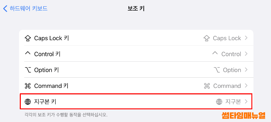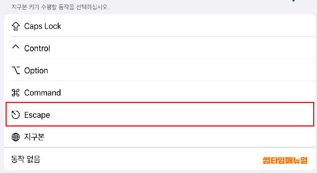 위와같이 설정을 변경한 경우 지구본을 누른 경우 ESC키로 적용이 되며 이외에도 Caps Lock, Control, Option, Command, 지구본 키를 통해서 다른 키입력인 키맵핑 설정이 가능합니다