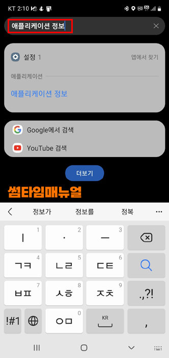 스마트폰에서 "애플리케이션 정보" 를 검색합니다