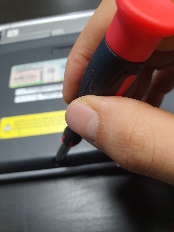 옆면을 헤라나, 작은드라이버 삐죽한 제품으로 슬슬 들어냅니다.