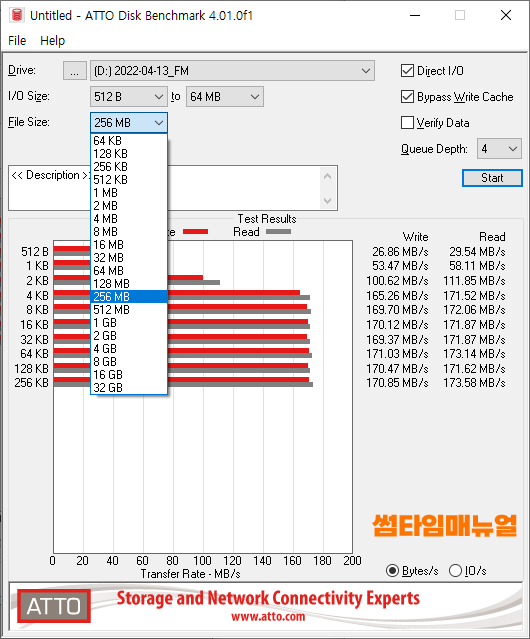 파일의 용량을 늘려 테스트를 진행한다면 위의 항목에서 최대 32GB까지 테스트가 가능하므로 위의 항목에서 테스트하고자 하는 값을 선택하여 테스트를 진행하도록 합니다