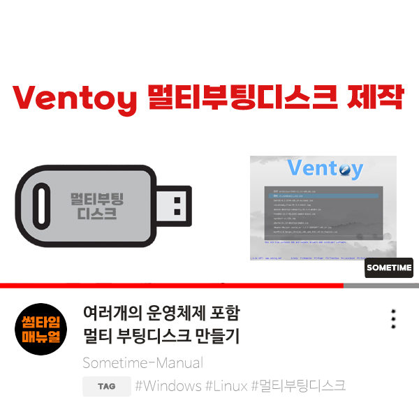 Ventoy 프로그램을 이용하여 만들어낸 부팅디스크는 부팅시 여러개의 운영체제를 멀티형태로 간단하게 Iso 파일을 USB에 담아 손쉽게 선택하여 운영체제를 설치할 수 있습니다