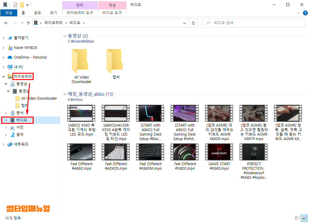 좌측의 라이브러리 항목을 선택하도록 하고, "비디오" 항목을 찾아본다면 위와같이 라이브러리에 추가되어있는 항목들을 확인할 수 있습니다