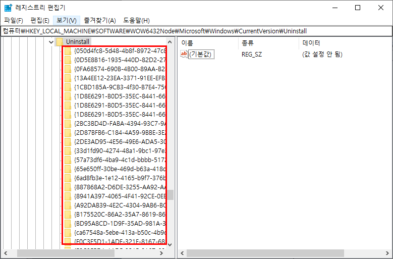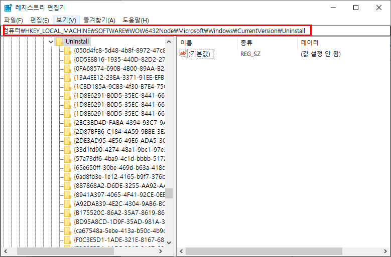 | 컴퓨터\HKEY_LOCAL_MACHINE\SOFTWARE\WOW6432Node\Microsoft\Windows\CurrentVersion\Uninstall |