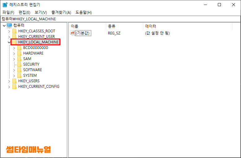 위의 경로를 복사한 뒤 레지스트리 편집기의 주소창에 입력합니다