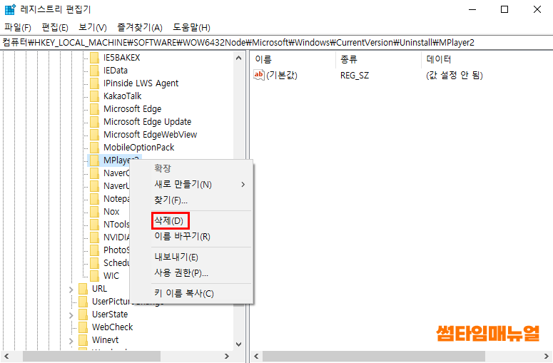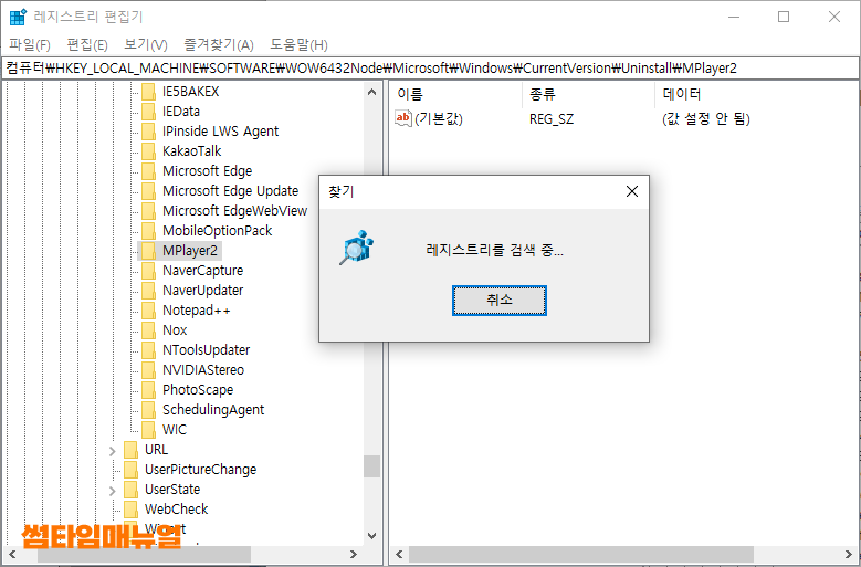 레지스트리를 통한 프로그램 삭제 방법