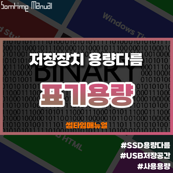 저장장치는 문서 또는 설치형태의 프로그램을 저장하는 역할을 수행하며 자료의 읽기/쓰기가 이뤄지게 되므로 저장장치를 구매시에는 저장공간의 용량을 계산해보게 되는데 저장장치를 실제 컴퓨터에 연결해보면 표기된 용량과 다른 수치의 용량이 확인되게 되는데 이러한 문제가 발생되는데에는 표기용량과 실제용량의 측정 시 사용되는 진법에서의 차이 발생으로 수치가 다르게 계산되게 됩니다