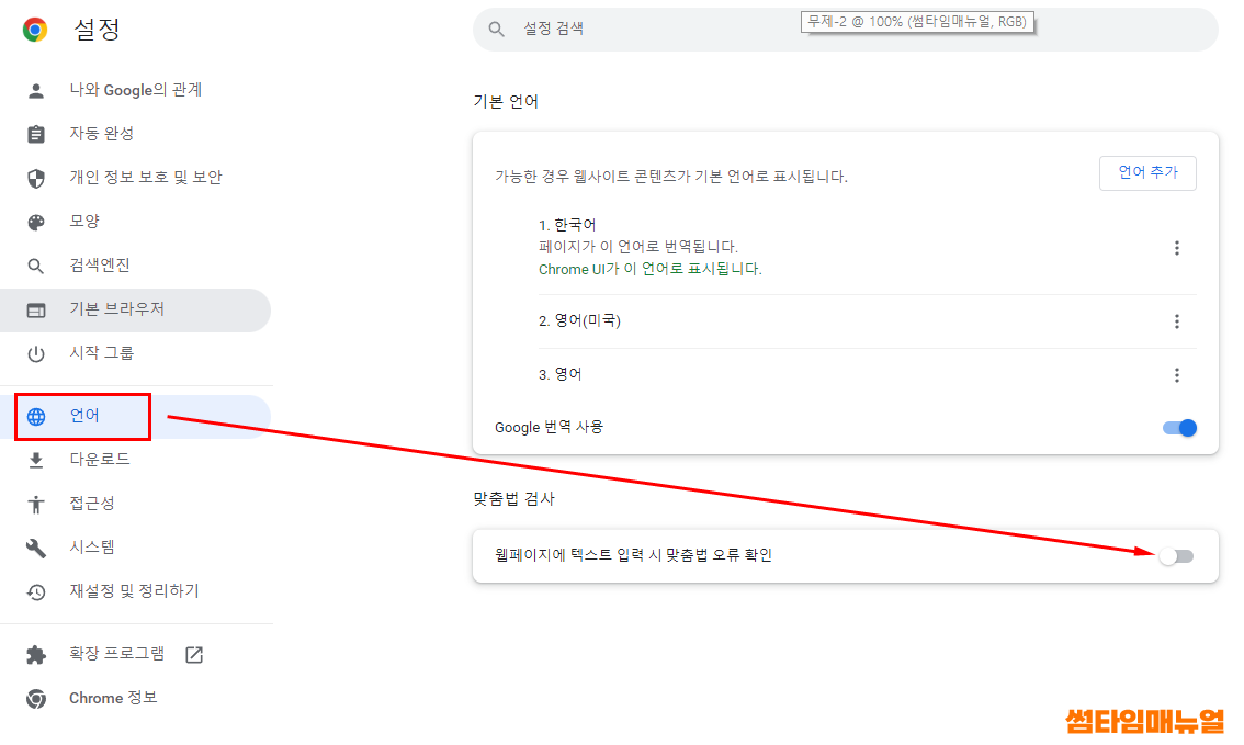 크롬 자동 맞춤법 기능 해제하기