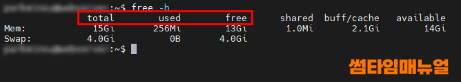 전체 용량부터 사용중인 공간, 사용가능한 공간에 대해 확인되는 모습