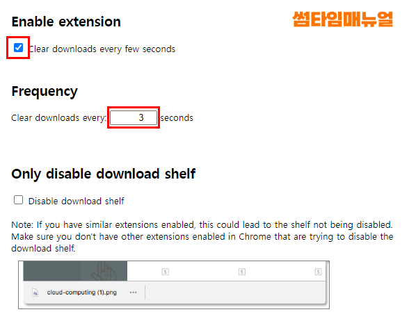 Enable extension : 설정한 단위 다운로드 지우기