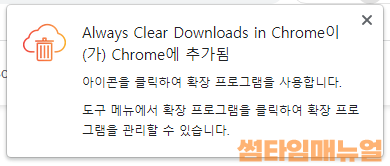 확장 프로그램 아이콘을 선택한 뒤 설치한 Always Clear Downloads in Chrome 프로그램을 선택합니다