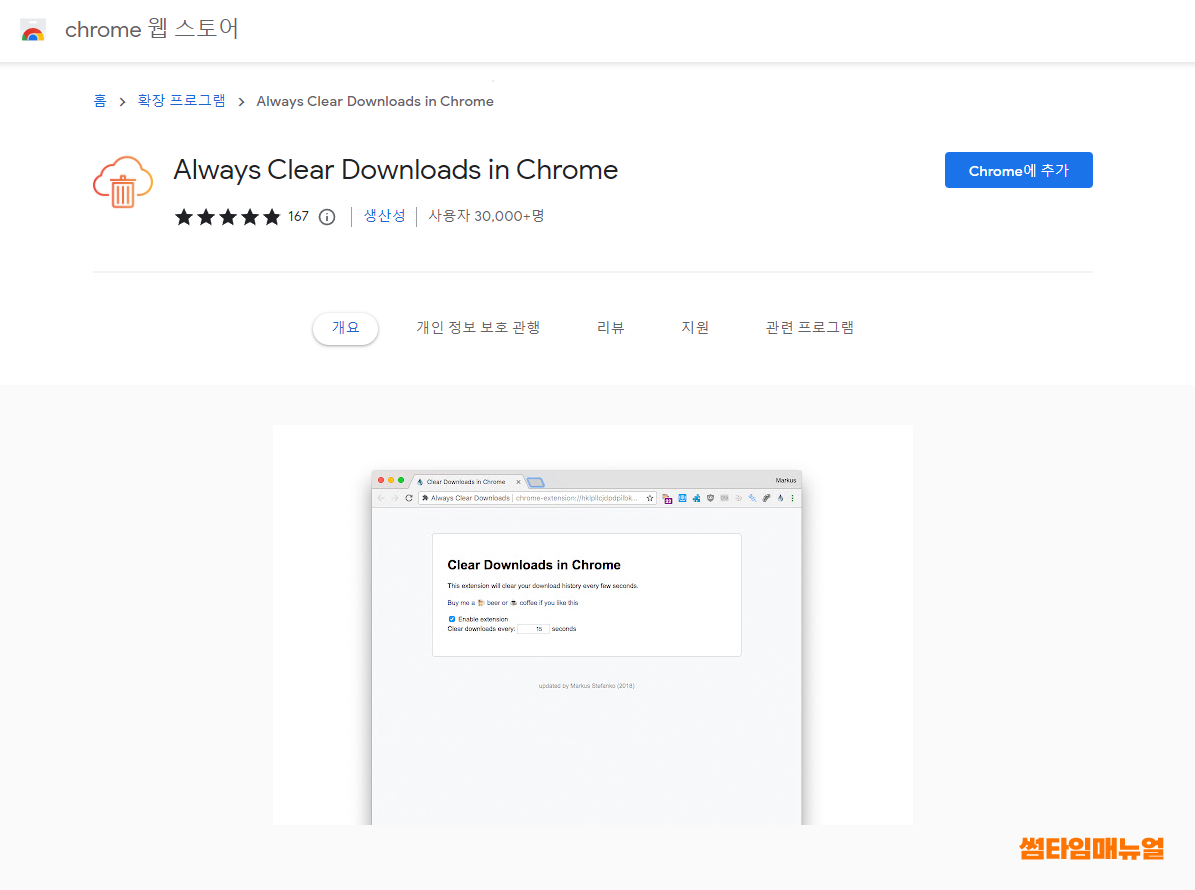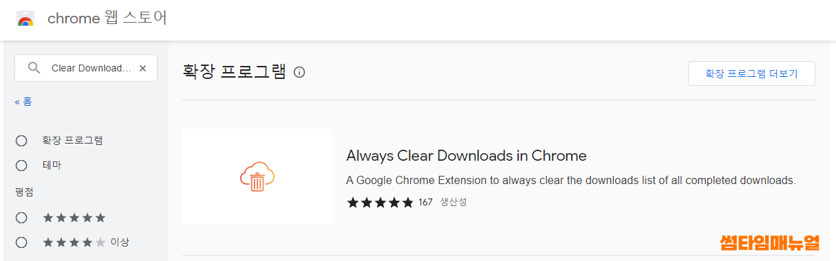 위와같이 Always Clear Downloads in Chrome 확장 프로그램을 검색합니다