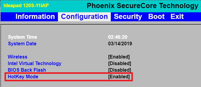 바이오스 진입 후 Configuration 탭에서 HotKey Mode 항목으로 이동하여 Disabled 값으로 변경해준다면 Fn 키는 더이상 동작되지않으며 PC와 동일하게 단축키 명령이 Fn 키를 누르지않더라도 사용가능합니다 반대로, Fn 키를 자주 사용하는 경우라면 Enalbed 값으로 변경하도록 하며 해당 값을 저장하기 위해 Exit Saving Changes 값을 선택하여 재부팅해주도록 합니다