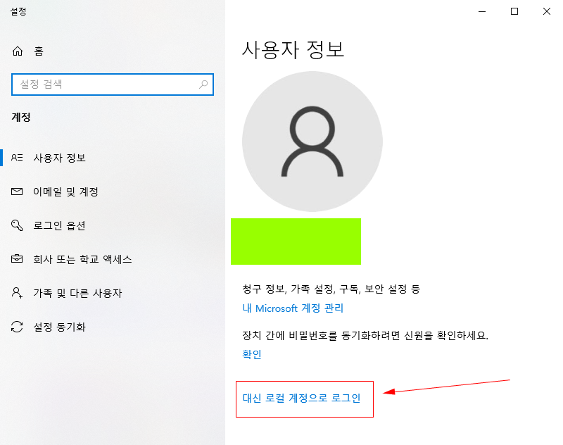 윈도우10 내 디스플레이설정 버튼을 눌렀을때 위와같이 확인된다면 포맷또는, 사용자 계정을 변경하여 처리할수 있습니다.