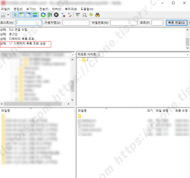 파일질라 클라이언트를 통해 접속이 잘되는지 체크해보면되겠습니다