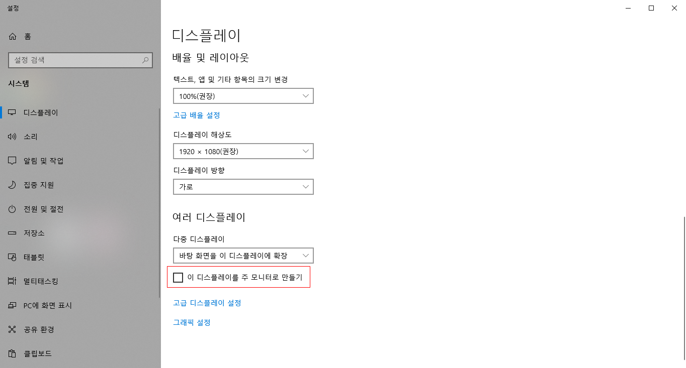 3. 하단 이 디스플레이를 주 모니터로 만들기 체크